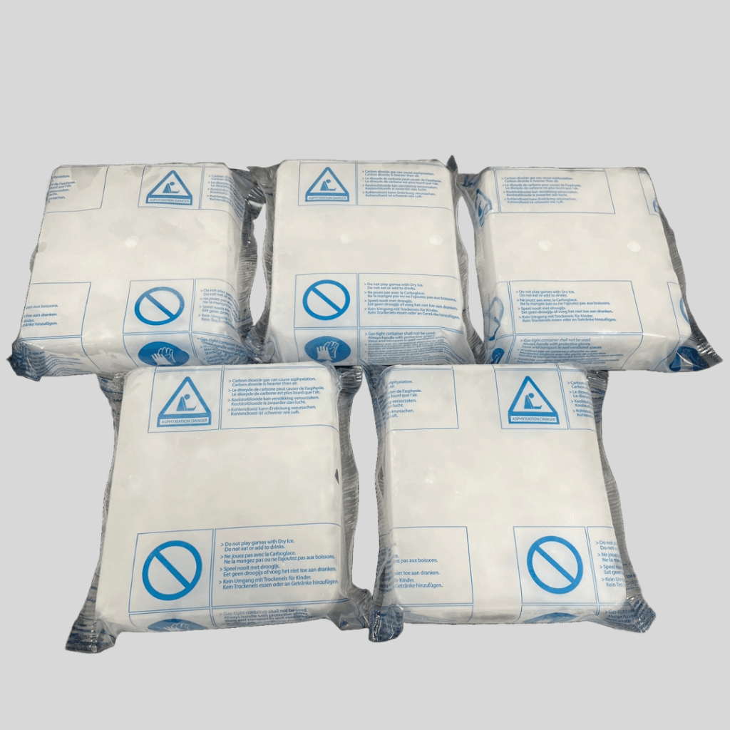 Dry ice is safe to use but should be handled with care. Always wear insulated gloves or use tongs to prevent frostbite. Avoid direct skin contact and use in well-ventilated areas to prevent CO₂ buildup.